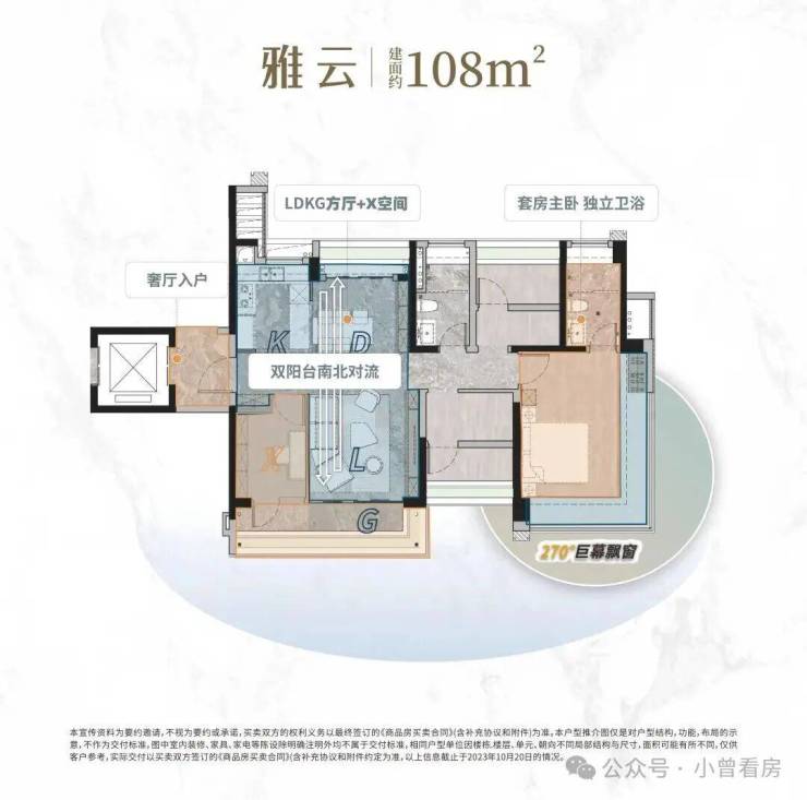 建面约108㎡户型主打温情互动与百变生活,采用奢厅入户设计,实现脏净分离,勾勒出清晰的生活秩序,避免外界灰尘带入室内,保持室内环境的整洁与舒适。户型采用LDKG+X一体化设计,将客厅、餐厅、厨房、阳台与灵活空间串联起来,解锁家人互动新模式,让家人在烹饪、用餐、休闲的过程中,能够随时互动交流,增进家人之间的感情。