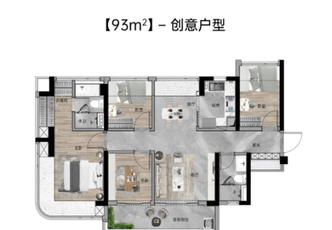 超 100% 超高使用率,最高达 110%,80-125㎡户型实现 3-5 室布局,空间利用率远超同区域多数项目,刚需价格享受改善空间。