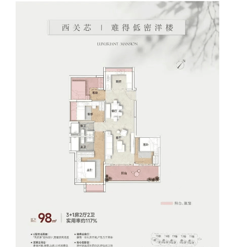 新规户型图:98–156㎡全四房,117%使用率+双套房设计突破老城局限