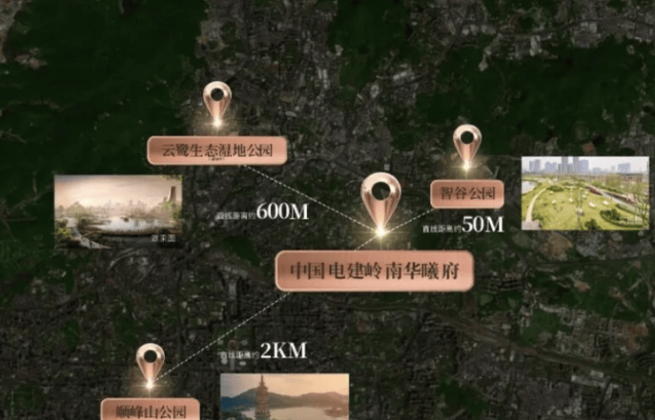 A2: 指三大公园:一路之隔的约11万㎡智谷公园、西北侧约600米规划中的约1000亩云鹭湿地公园、以及西南侧2公里的8209亩顺峰山国家5A级景区。构成了“日常-未来-度假”多层级公园体系。