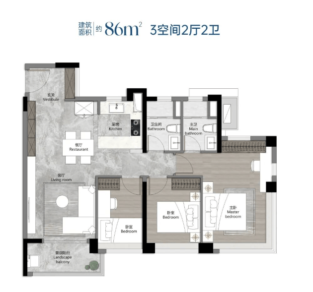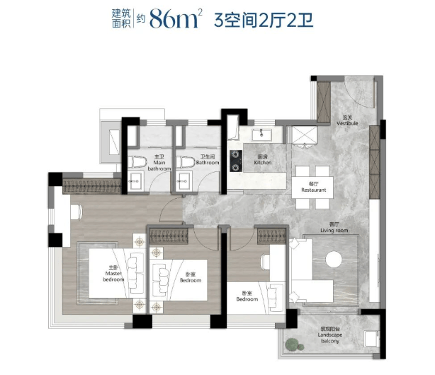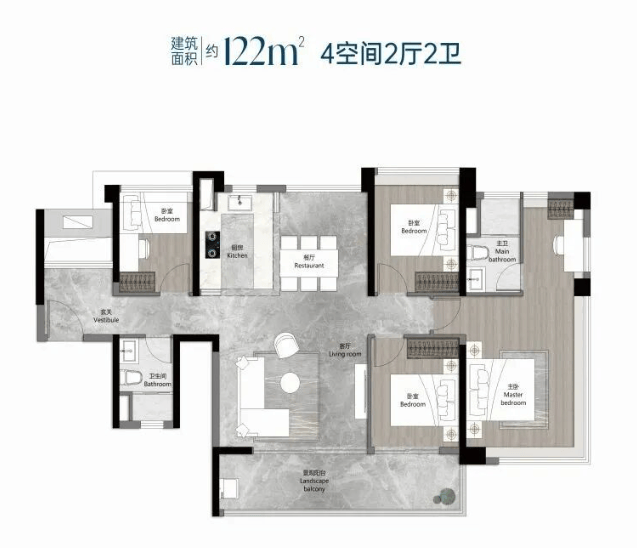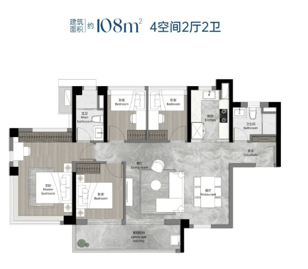 广纸314地块主推建面约88-120平方米的三至四房户型,其中88平方米的户型可实现三房两卫设计,而108平方米和120平方米的户型则分别提供了四房设计。这些户型均实现了极高的使用率,如88平方米的户型相当于旧规下110平方米的空间感,108平方米和120平方米的户型则分别等同于旧规下的120-140平方米户型。此外,阳台占比可达套内面积的20%,极大地提升了居住舒适度。