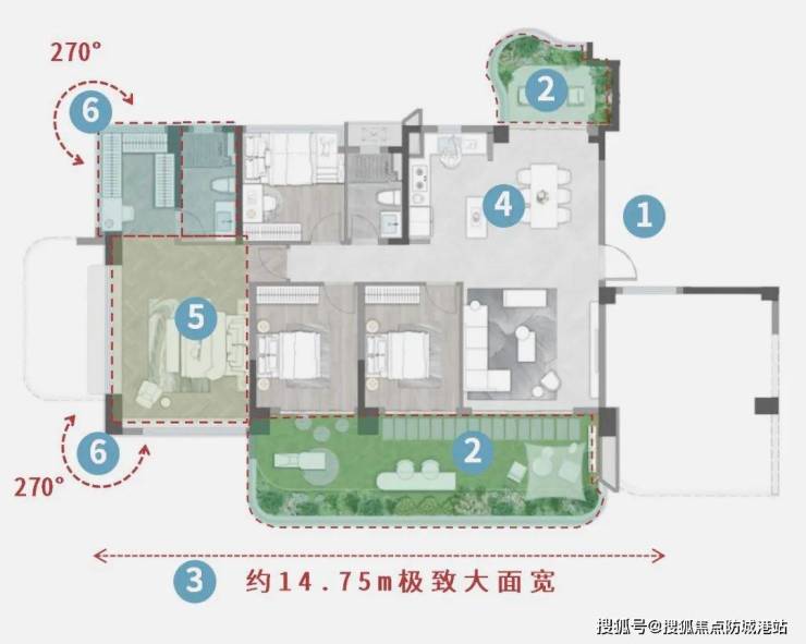 招商林屿境作为广州首个超新规四代住宅,通过“大阳台+空中花园”创新设计,露台赠送率高达40%,阳台率从旧规20%提升至25%,叠加飘窗等赠送面积,实用率最高达140%。以110㎡户型为例,实际使用面积超170㎡,实现“110㎡花费,170㎡享受”的空间突破,改写南沙户型标准。