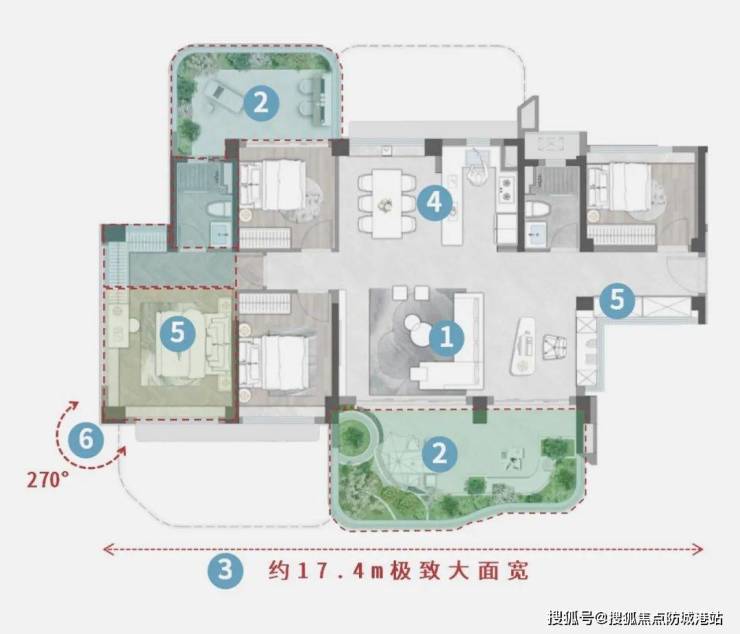 125㎡四房:双阳台+独立衣帽间,主卧270°全景采光,实测得房率140%+,满足高端改善需求。
