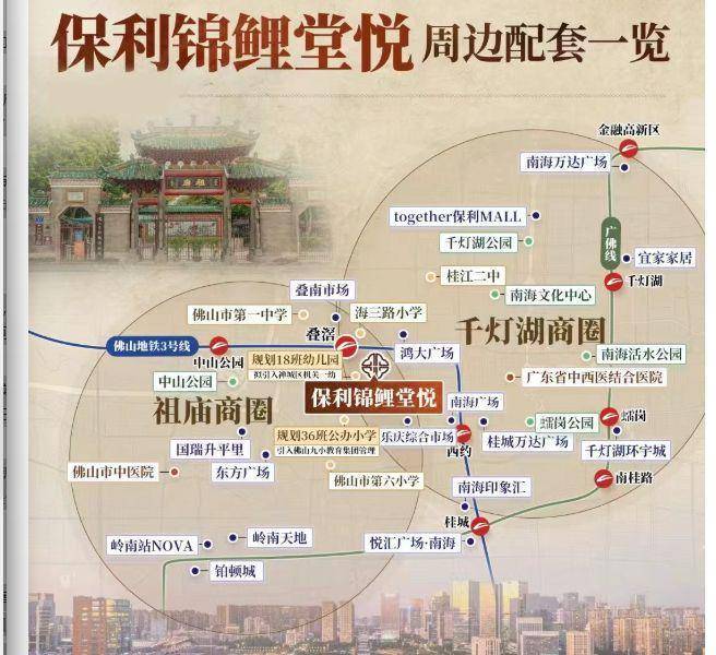 保利锦鲤堂悦位于佛山市禅城区文化北路与鲤鱼沙道交叉口,与佛山地铁三号线叠滘站直线距离仅 300 多米。项目坐落于禅桂交界的城北板块,紧邻祖庙千灯湖商圈,尽享祖庙千灯湖双芯的成熟配套与发展红利,地理位置得天独厚,发展潜力巨大。售楼处电话:4009909752 。