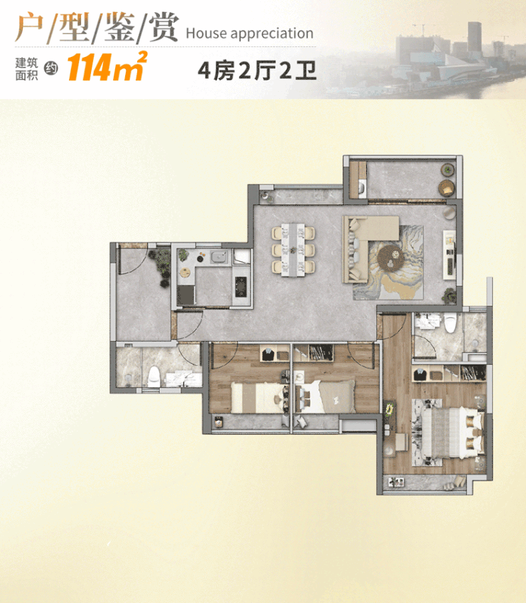 舒适N+1江岸学府新品——目前,项目推出了「舒适N+1」江岸学府新品,涵盖建面约95-133平方米的N+1房,每户主打舒适实用,一步到位改善居住条件。无论是95平方米的精致两居室还是133平方米的豪华四居室,均实现了空间平权,没有一位家庭成员会被亏待。多开间朝南,自带双阳台,携清风阳光入室,提升了居住体验。