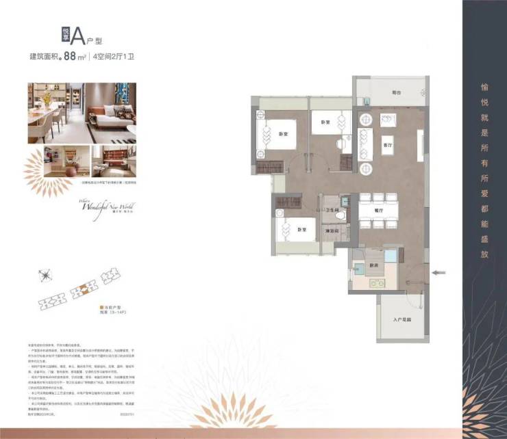 77㎡三房两厅一卫:总价440万起,刚需上车首选,主卧带飘窗,U型厨房提升操作效率;