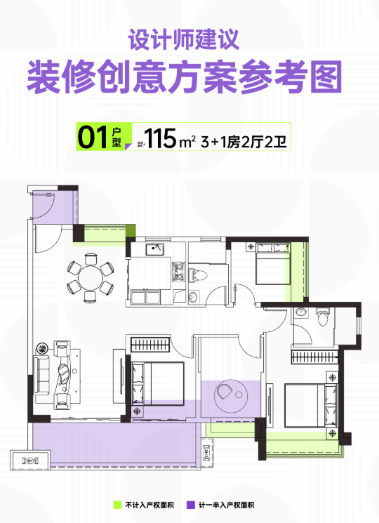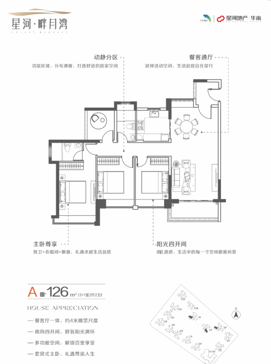 星河畔月湾主力户型涵盖约80-89-113-114-115-126㎡三至四房,精准匹配刚需、改善及多孩家庭多元需求。户型设计注重功能性与舒适性并重:部分单位实现南北通透、双阳台布局,采光通风俱佳;高使用率确保每一寸空间都物尽其用。