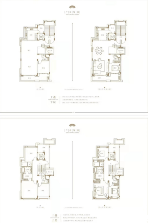 建面266-306㎡联排四房两厅四卫,采用毛坯交付,给予业主更大的个性化定制空间。双首层设计搭配8米层高地下两层,空间尺度惊人。
