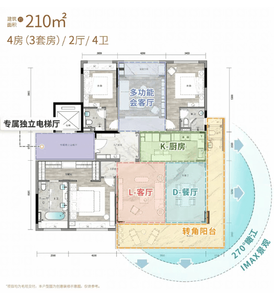 博源尚云府提供多种户型选择,面积从135㎡至210㎡不等,每个户型均采用了板式设计,确保了良好的采光与通风条件。建面约210㎡的大平层更是拥有南向约15.7米的超宽面,让住户无论身处客厅还是卧室都能尽享浩瀚江景。