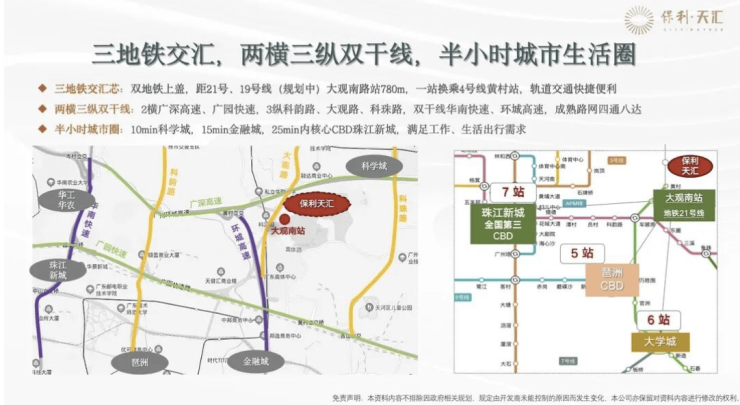 答:项目距21号线大观南路站约1.2公里,并可换乘4号线和5号线直达珠江新城及金融城,自驾可通过快速路及高速轻松抵达各区。