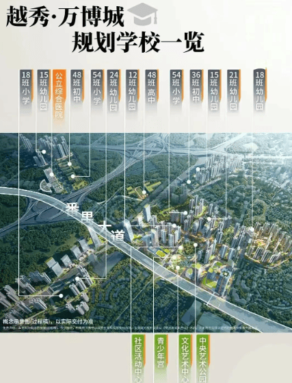 越秀万博和臻不仅地理位置优越,其教育资源同样令人瞩目。项目内规划有6所幼儿园、3所小学、2所初中和1所高中,形成了覆盖全年龄段的教育体系。其中,54班小学和36班初中已引入广附实验教育集团管理,确保孩子们能够享受到优质的教育服务。在这里,家长无需担心孩子的升学问题,真正实现了“家门口的好学校”。