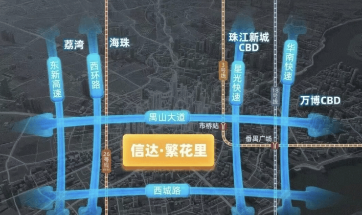 现有地铁:3号线市桥站高德实测距离1.7公里,公交5分钟接驳,25分钟直达珠江新城CBD。