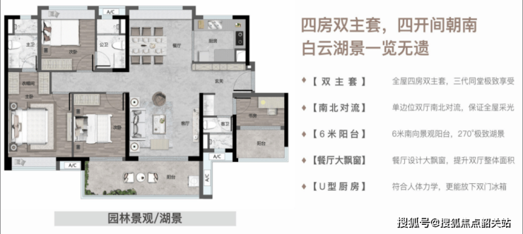 【140㎡四房二厅二卫】四房双主套,6米大阳台,望湖极致景观面!!