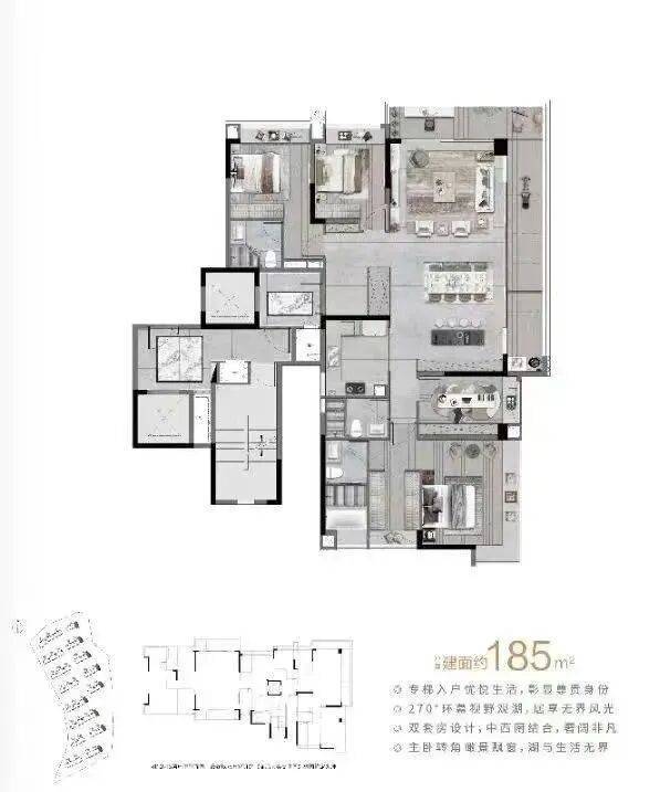 200–240㎡湖景大平层:双主卧套房、全景阳台、独立家政区,满足高阶生活场景。