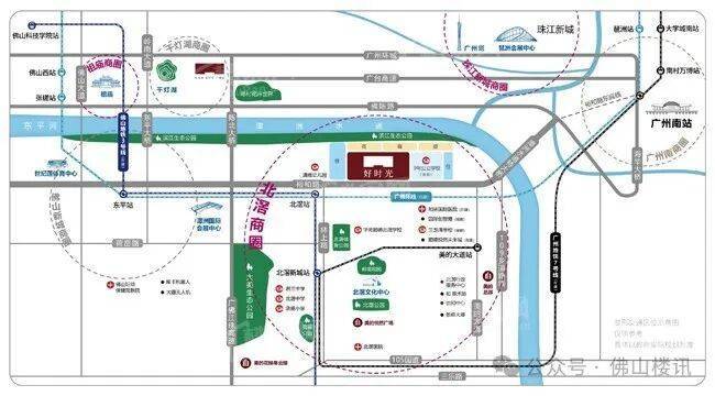 美的卓越好时光位于顺德北滘新城、佛山新城与陈村交汇处,距离广州地铁7号线美的大道站约1.6公里,佛山地铁3号线北滘西站2公里,2站直达广州南站,连通大学城南站。