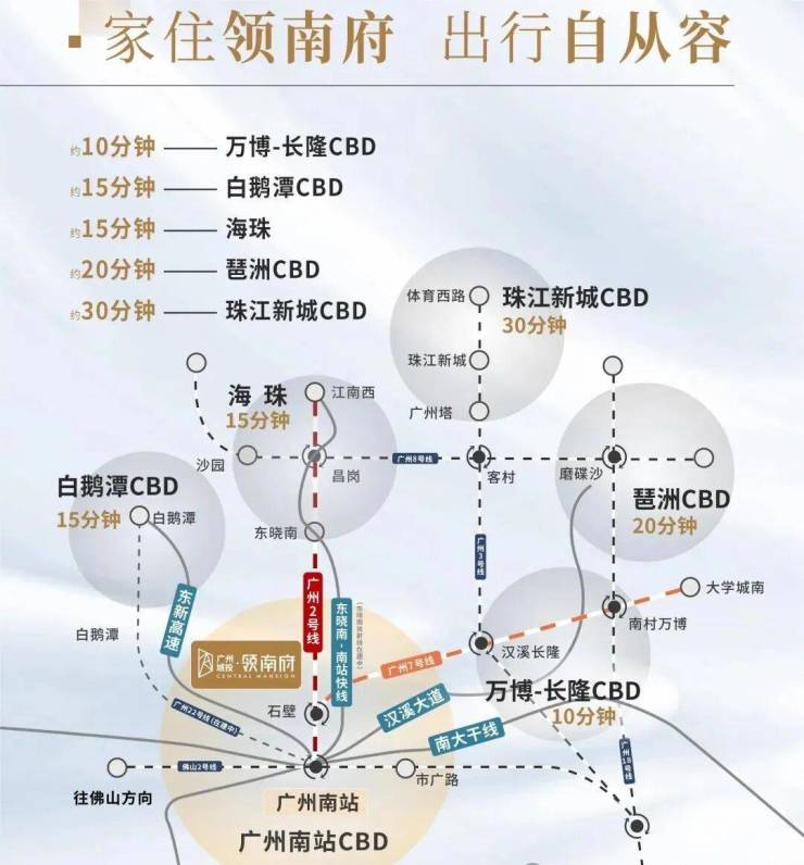 首先,项目紧邻广州南站,这是中国南方最大的高铁枢纽之一,也是亚洲最大的综合交通枢纽之一。通过广深港高铁、贵广铁路、南广铁路、广珠城际等多条高速铁路线路,项目可快速直达深圳、珠海、南宁、贵阳等周边城市,甚至远至香港、澳门。对于经常需要往返港澳或在一线城市间穿梭的商务人士而言,这种“半小时生活圈”的便利性,无疑极大提升了工作效率与生活品质。同时,广州南站还设有地铁2号线、7号线、22号线以及在建的广佛环线,形成了“轨道上的大湾区”核心节点。乘客可在站内无缝换乘,轻松抵达珠江新城、琶洲、白鹅潭、海珠湾等核心商圈,实现“一站直达”的出行体验。