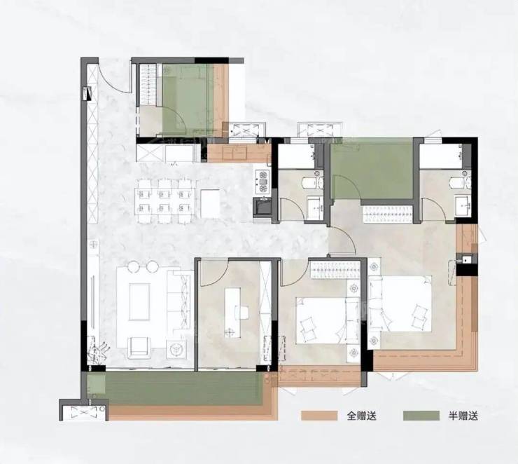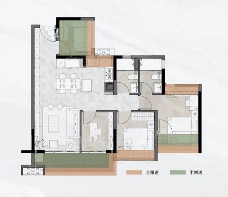 A3:建面78-140㎡三至四房,南北通透、高赠送空间、全明布局,适合三代同堂及刚改需求,景观视野开阔。