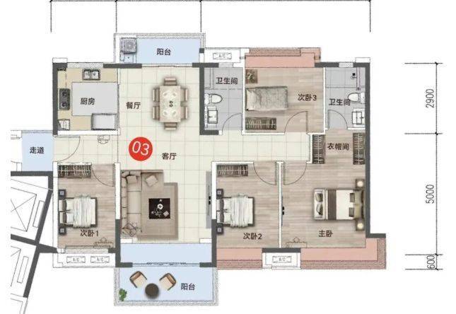 110平米3+1房:总价8X万起,低首付,月供仅需3千多元。该户型动静分区合理,客厅开间达到3.7米,并设有超大阳台联通次卧,实用率高达89%。