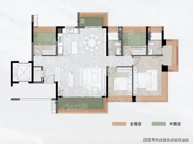140㎡ 4+1房:专梯专户,入户厅独享,全屋南北对流,双阳台设计,10个采光面。