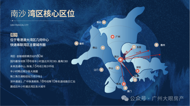 天时:坐拥粤港澳大湾区、南沙国家级新区、自贸区、国际金融岛四重顶级政策红利叠加的历史性机遇。