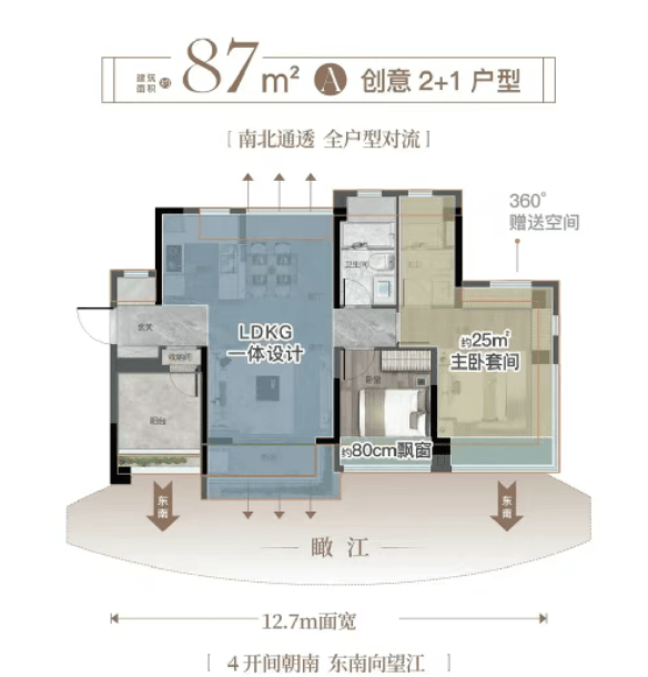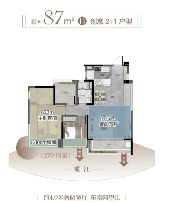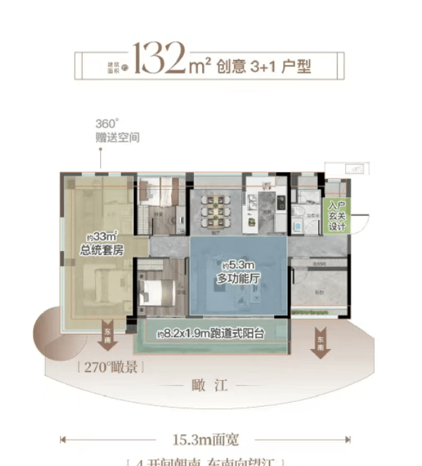 高性价比之选,5.2米方厅大气从容,三阳台赠送拓展生活尺度,270°瞰江飘窗视野开阔。