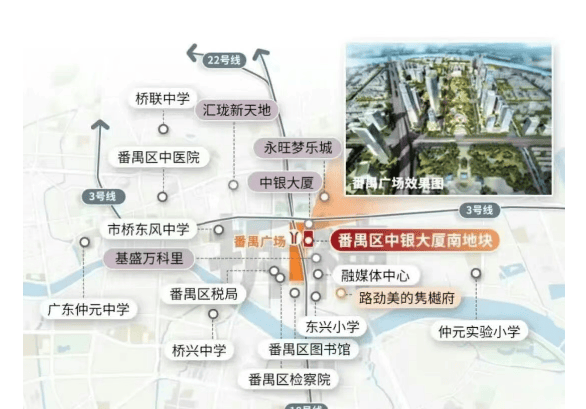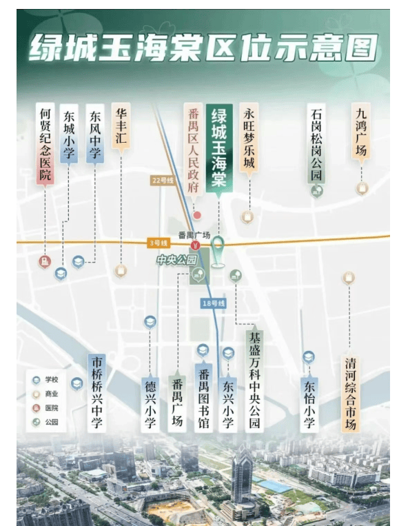 《绿城玉海棠》地理位置优越,位于番禺广场核心地段,距离区政府直线距离仅约200米,周边环绕财政局、税务局、教育局等多个重要市政部门。项目紧邻地铁3号线、18号线及22号线交汇的番禺广场站,交通便利性极高,不仅便于居民日常通勤,也使得该区域成为连接广州各大主要商务区的重要节点。加之附近正在建设中的大型商业综合体,如番禺广场TOD和永隆综合体,未来将形成区域内的新地标,显著提升生活品质与投资价值。