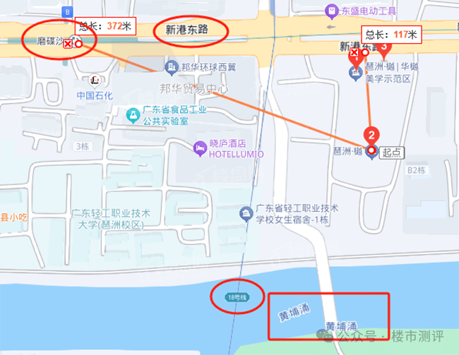A4:项目距离地铁8号线、18号线磨碟沙站仅约300米,步行3-5分钟即可到达。周边还有多个公交站点,涵盖多条公交线路;紧邻新港东路,可快速连接新光快速、华南快速等高速公路入口,驱车20分钟可达广州南站,30分钟可达白云国际机场,交通通达性极佳。