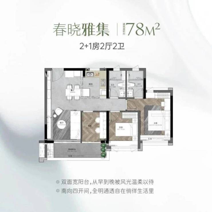 78㎡三房两卫堪称刚需福音,总价440万起就能扎根天河,性价比直接拉满。采用LDKG一体化设计,客餐厨一体化通透布局,四开间采光,让小户型也能拥有充足采光与开阔空间。阳台开间达5.5米,既可以作为休闲观景区,也能打造为洗衣晾晒区,兼顾实用性与美观度,日常晾晒、养花种草都不耽误,满足年轻人对品质生活的追求。