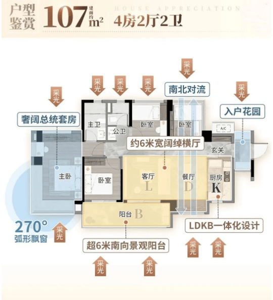 建面约105㎡四房两卫:改善型核心户型,做到四房布局,满足多孩家庭或三代同堂需求。户型南北通透,餐客厨一体化设计,动线流畅;主卧配备全景飘窗与独立卫浴,尊享私密空间;书房可灵活改造为儿童房或茶室,空间实用性强。超高使用率让105㎡空间拥有媲美传统120㎡户型的居住体验。