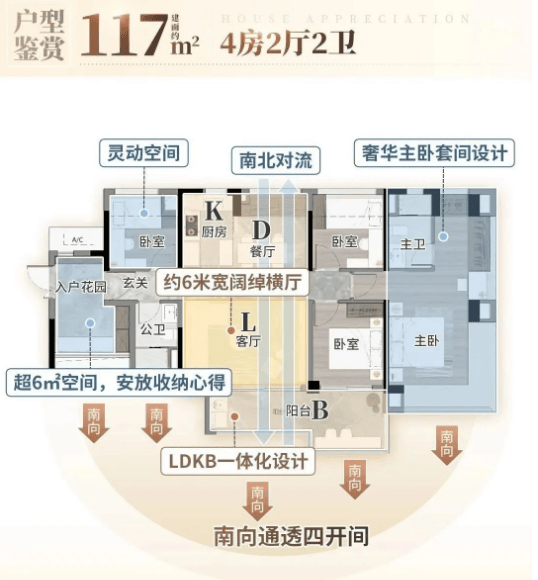 建面约116㎡五房两卫:终极改善户型,空间开阔舒适,全南向布局,每一户都能享受充足采光与景观视野。客厅连接超大景观阳台,可俯瞰社区园林与珠江远景;主卧套房配备豪华卫浴与衣帽间,次卧空间充足,均能满足居住需求。该户型适合追求高品质生活的大家庭,多功能空间设计适配家庭不同阶段的需求变化。