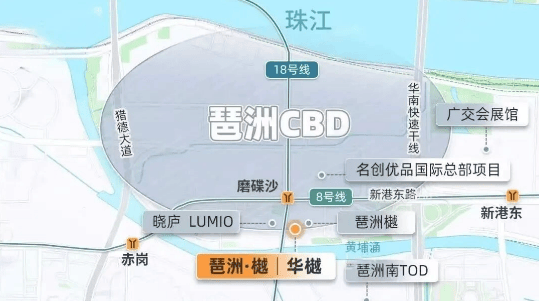 琶洲·樾|华樾紧邻地铁8/18号线双线交汇的磨碟沙站,直线距离仅约200米,交通便捷无比。此外,在建中的12号线赤沙站也近在咫尺,进一步提升了出行便利性。