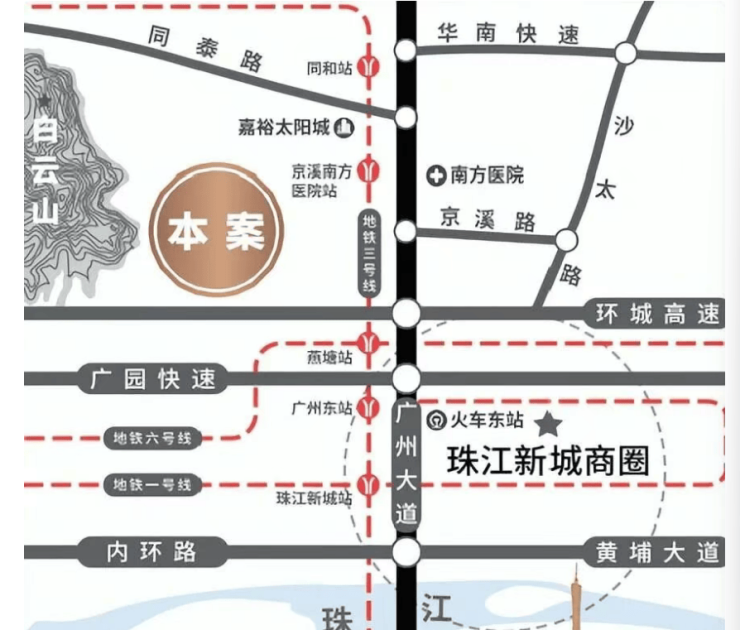 轨道交通:步行约 650 米直达地铁 3 号线京溪南方医院站,1 站达同和、3 站达体育西路、5 站达珠江新城,无缝串联天河、越秀、番禺等核心区;未来 18 号线北延段京溪路站(约 1.2 公里)开通后,2 站直达珠江新城、3 站直达琶洲 CBD,双地铁加持,通勤效率翻倍广州市白云区人民政府。