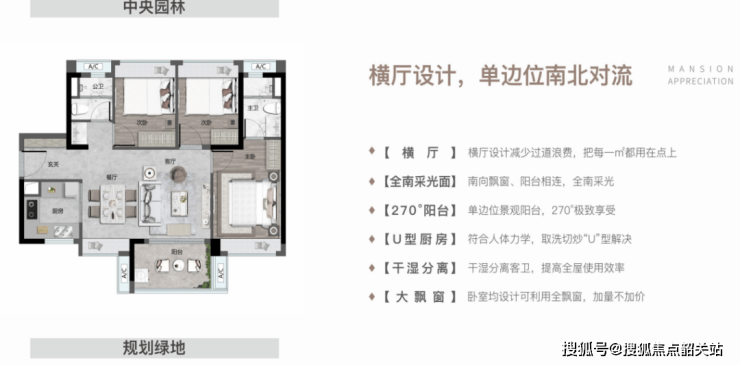 113㎡四房二厅二卫:双厅南北对流,大飘窗设计,享受极致开阔视野。