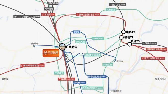 交通便利性是该项目的突出亮点。在轨道交通方面,四地铁接驳,18 号线(已勘察)、24 号线(今年动工)、9 号线以及规划中的 29 号线,构建了密集的地铁网络;三城轨串联,广清城轨(一期已通车,二期建设中)、穗莞深城轨(在建)、广佛环线,加强了区域间的联系;五高铁接入,武广高铁、京广高铁以及规划中的广河高铁、广清永高铁、贵广高铁联络线,进一步提升了对外交通的便捷性。此外,通过地铁、城际、T4 航站楼 APM、快速路等多种方式,构建起广州北站 - 白云机场空铁联运枢纽,30 分钟直达白云机场。如此发达的交通网络,让居民可以随心切换出行方式,无论是日常通勤、商务出行还是休闲旅游,都能高效便捷地实现,真正为生活提速。