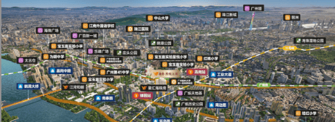 3公里内还有广州市五中附属初级中学、广州市第41中学、宝玉直实验小学(光大校区)、江南外国语学校等9所学校。