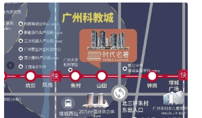 交通便捷性是时代名著的 “王牌优势”。项目距离 21 号线山田地铁站 C 口仅 29 米,步行约 1 分钟即可进站,真正实现 “地铁在家门口”。从山田站出发,换乘快线 3 站(约 14 分钟)可达黄埔知识城镇龙站,5 站(约 38 分钟)直达天河大观南路站,彻底打破 “增城到主城” 的时空壁垒。