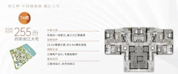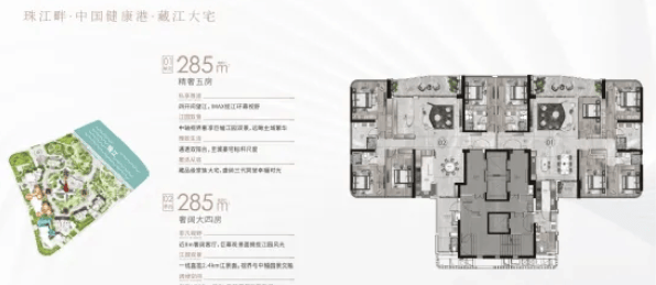 户型:建面约233-285平方米四至五房,东向/东南向一线望江,极致3.4-3.6米层高