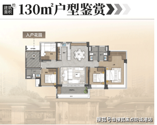 建面约130㎡户型:高端改善首选,双主套设计,尊享品质生活。该户型可做到五空间和双主套设计,把以往160㎡以上户型才能做到的双主套用更少的面积实现,性价比极高;配备约57㎡LDKB方厅、主卧环幕飘窗、独立衣帽间等设计亮点,空间宽敞大气,尊享感十足;双主套设计,长辈与夫妻可各自拥有独立的主卧与卫生间,隐私性更强,居住更舒适,适合追求高品质生活的高端改善家庭。