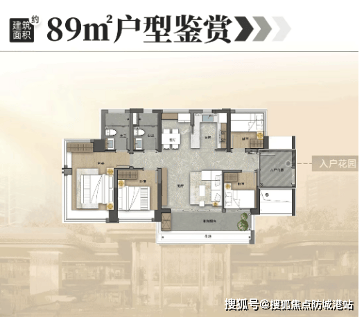 建面约89㎡五空间两厅两卫:横厅设计,南北对流,居住舒适度极高。该户型采用横厅设计,最大化利用空间,减少浪费,南北对流,通风效果极佳;餐厅带飘窗,主套三面环幕采光,全屋采光性能出色,每一个空间都能享受充足的日照;同时,配备入户花园、270°环幕飘窗等亮点设计,空间灵活多变,可根据家庭需求进行改造,适合三口之家、四口之家居住。
