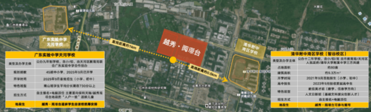 清华附中摇号:项目紧邻清华附中湾区学校(2025年9月开学),业主子女可参与摇号,该校采用“清华系”课程体系,2024年首届高考本科率100%。