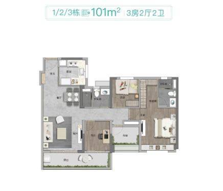 项目户型段覆盖约 67—103㎡,以三房结构为主。户型布局充分考虑家庭结构变化与功能空间需求,如客厅餐厅一体化布局、生活阳台、观景阳台、独立厨房等以提高空间使用效率。部分户型具备可拓展空间设计,使居住者在满足基础功能的同时具有空间适配能力。