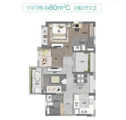 户型设计注重采光面配置与通风效率,客厅面宽、双面采光与卧室分布逻辑均体现实用性与空间尺度。对于中青年家庭而言,可满足不同阶段的生活方式需求。