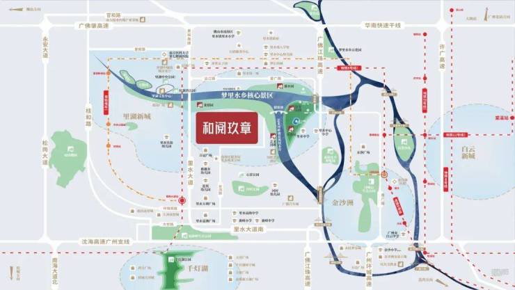 和阅玖章位于里水中心板块,周边3km范围内教育、商业、医疗配套,一应俱全,临江而立,占据着黄金江岸线绝佳的瞰江地段,带来全里水仅有的头排瞰江豪宅,项目楼下即是4A 景区“梦里水乡”,一河三岸约9公里水岸贯穿其中。