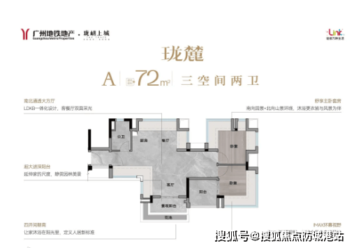▶ 建面约72㎡三房两厅两卫(刚需入门首选)