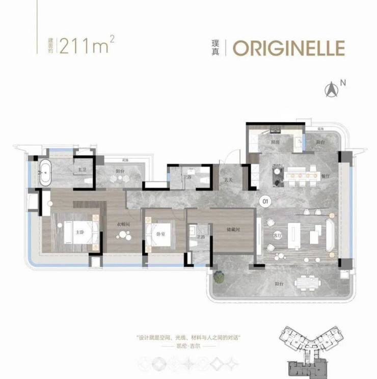更为值得一提的是,本次推出的211王炸户型。从楼栋分布来说,其刚好位于面朝中庭园林的楼王位置,真正的正南方向,270度被自然景观包围,生活的每一幕都是风景。