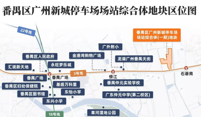 去年12月,广州新城停车场一期地块(亚运大道BD0410116地块)由广州地铁地产以底价118396万元成功竞得,楼面价约为1万/平方米(未扣除配建)。这一地块在春节前已完成规划批后公示,并正式命名为“广州地铁地产·珑曜上城”。该项目位于番禺区,地处“第二条南大干线”千亿产业轴的中心位置,周边分布有多个产业园区和智能制造基地,是番禺未来的“智核”。