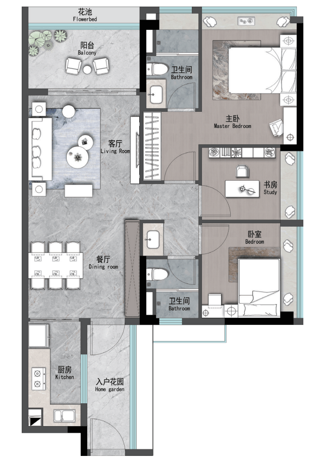 其他:全屋铺设天然大理石地板,墙面采用环保乳胶漆,门窗选用德国旭格系统窗,隔音隔热性能优异。