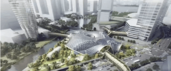 L2层:以新加坡樟宜机场为灵感打造的浮岛园林,绿植错落,营造都市热带雨林;