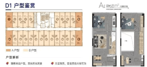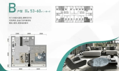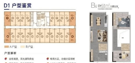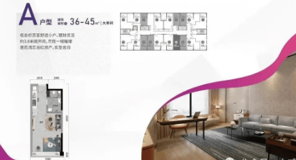 公寓户型:36-45㎡大单间、53-60㎡一房一厅、63-68㎡两房一厅