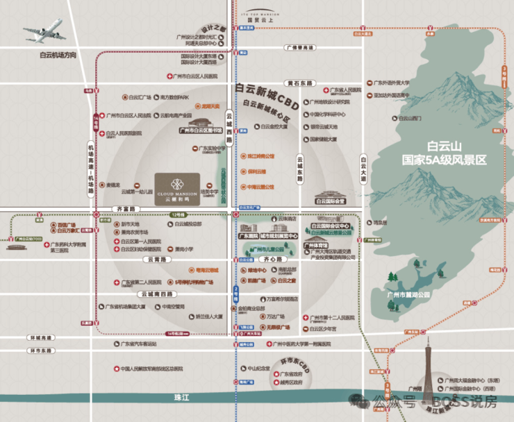 地段与交通:白云新城中轴核心,距地铁 2/12 号线白云文化广场站约 400 米,步行约 5 分钟,30 分钟可达天河 CBD;自驾接驳机场高速、环城高速,出行高效。